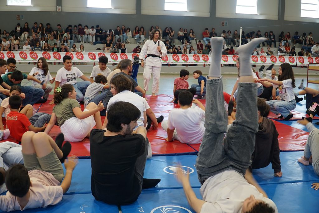 No final do fórum, realizou-se uma sessão prática, no pavilhão da escola, orientada pela atleta, durante a qual os alunos tiveram a oportunidade de participar em exercícios de treino e de aplicar algumas das técnicas e princípios do judo.